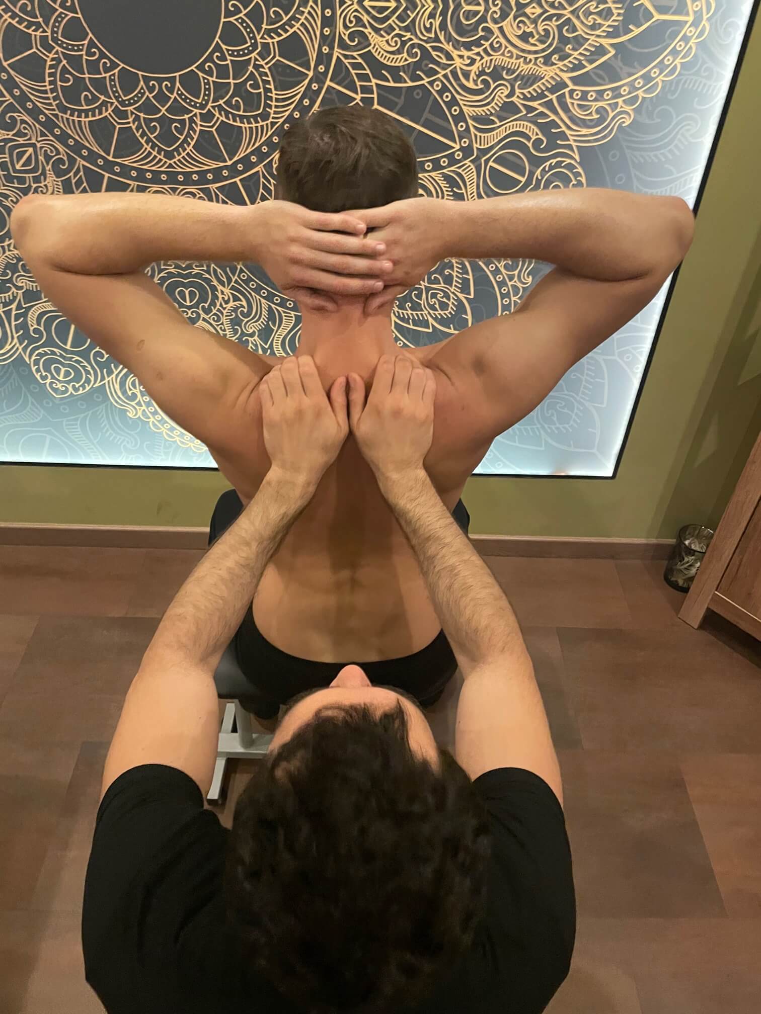 Terapia odbywa się w pozycji stojącej, leżącej, pochylonej, w zależności od opracowywanej części ciała.